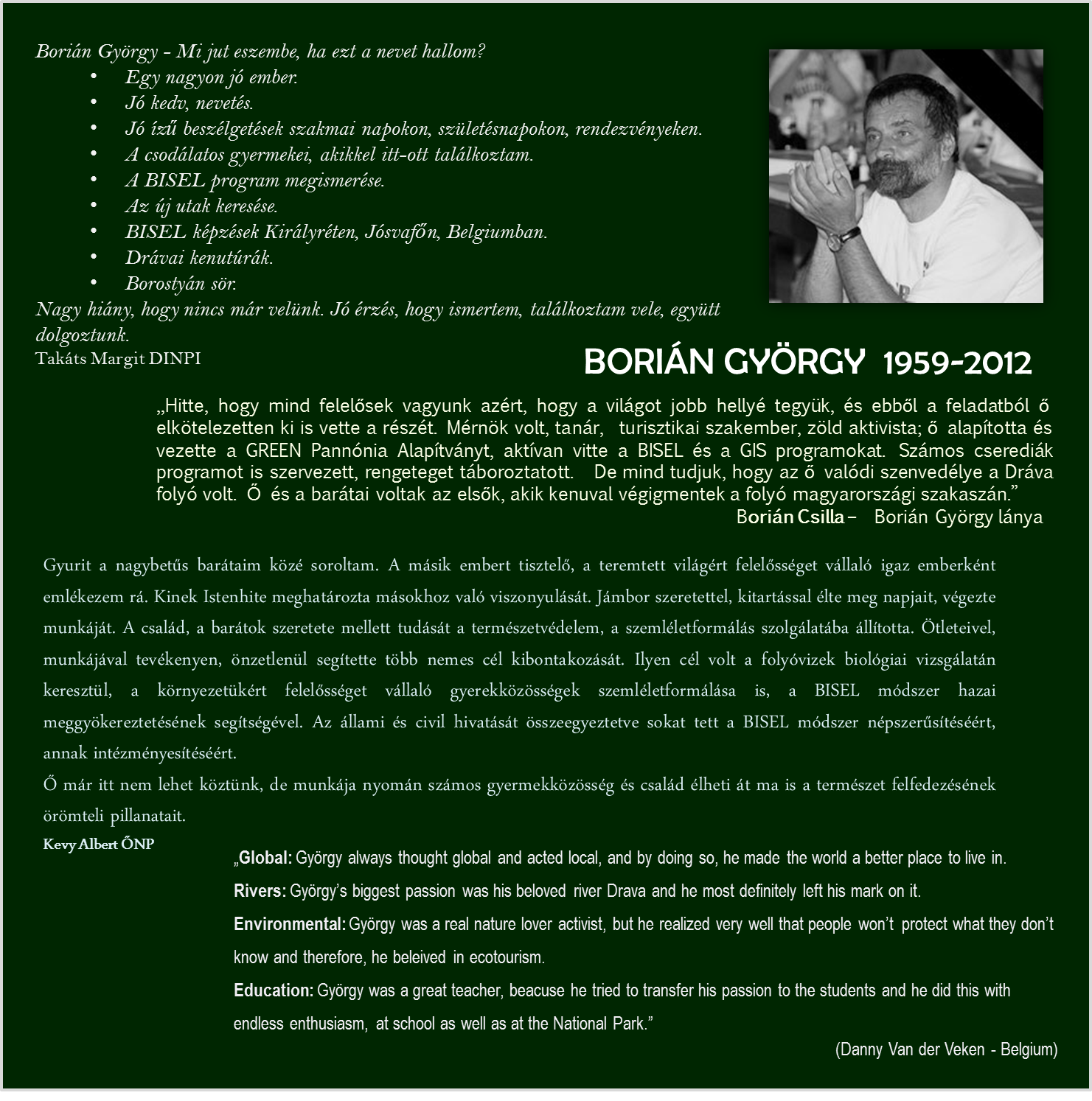 A keresztrejtvény megoldása BORIÁN GYÖRGY volt. Emlékezzünk a program meghonosítójára szerettei és kollégái emlékei alapján.